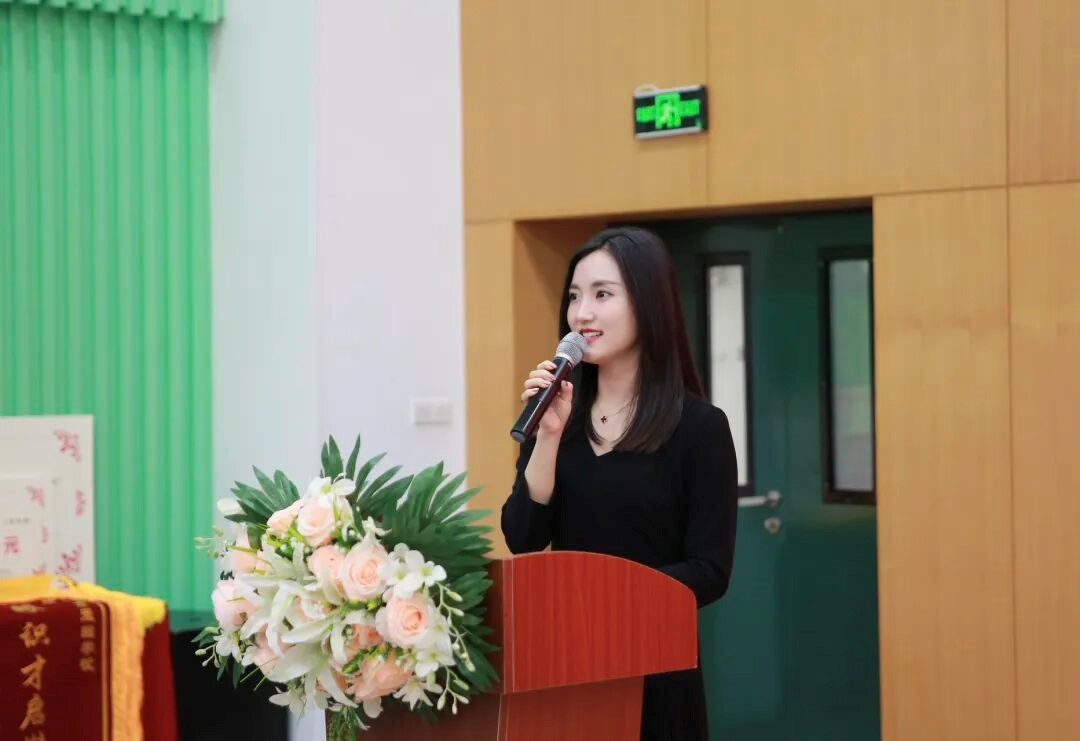 庄彦莉校董特别送上祝贺致辞,她高度肯定了本届毕业生取得的优异成绩,向刘一鸣以及其他考入名校的学子表示了最热烈的祝贺。庄校董以刘一鸣的成长故事对教育本质进行深刻诠释——教育不是简单地筛选“已成型者”,而是唤醒潜力、塑造可能,让每个生命都有机会突破局限、实现成长、绽放光彩。
