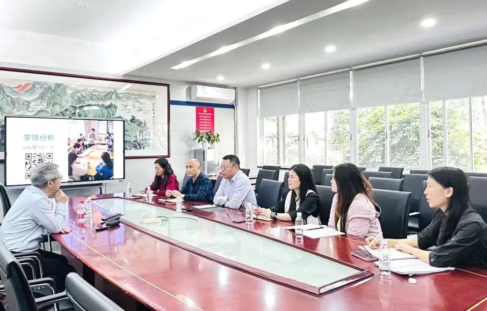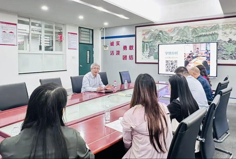 2026年3月18日下午,春意盎然,深圳市承翰学校迎来了一场关乎未来教育变革的深度对话。深圳市龙岗区教师发展中心培训部雷斌老师莅临我校,与东校区执行校长刘永明、教学中层领导齐聚一堂,围绕“AI高质量教学”这一核心主题,展开了热烈而富有前瞻性的交流。本次交流不仅厘清了教学痛点,更描绘了利用AI技术破解教学难题、打造标杆学校的宏伟蓝图。